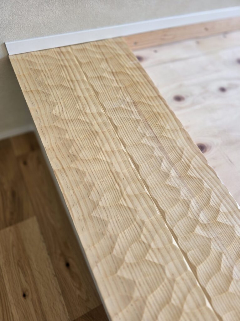 ・ベージュの塗り壁×無垢材アクセントで柔らかいデザイン