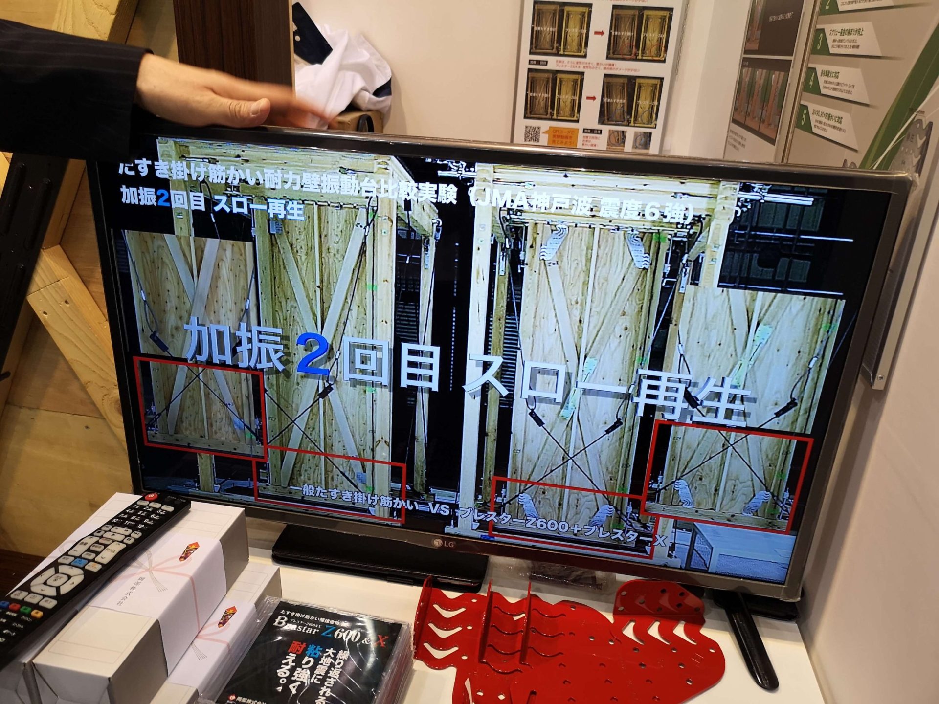ここは木造住宅に用いられる『筋かい』を補強する金物を扱う会社のブースです。