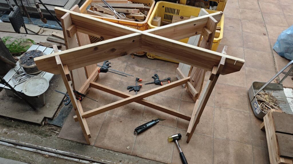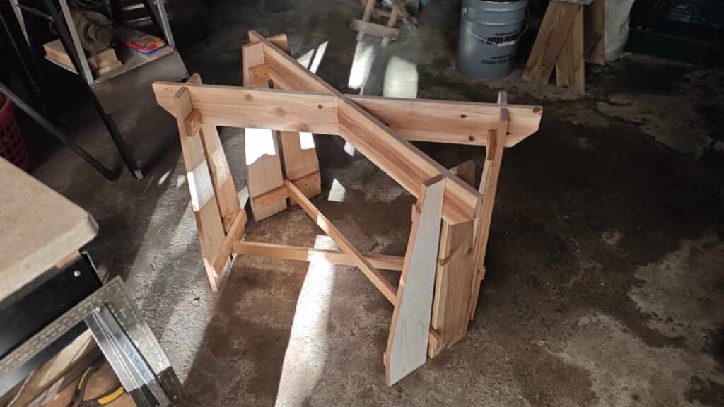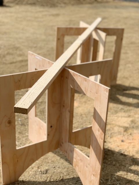 このペケ台は使うときはコンパネをバッテンに組み合わせて使って