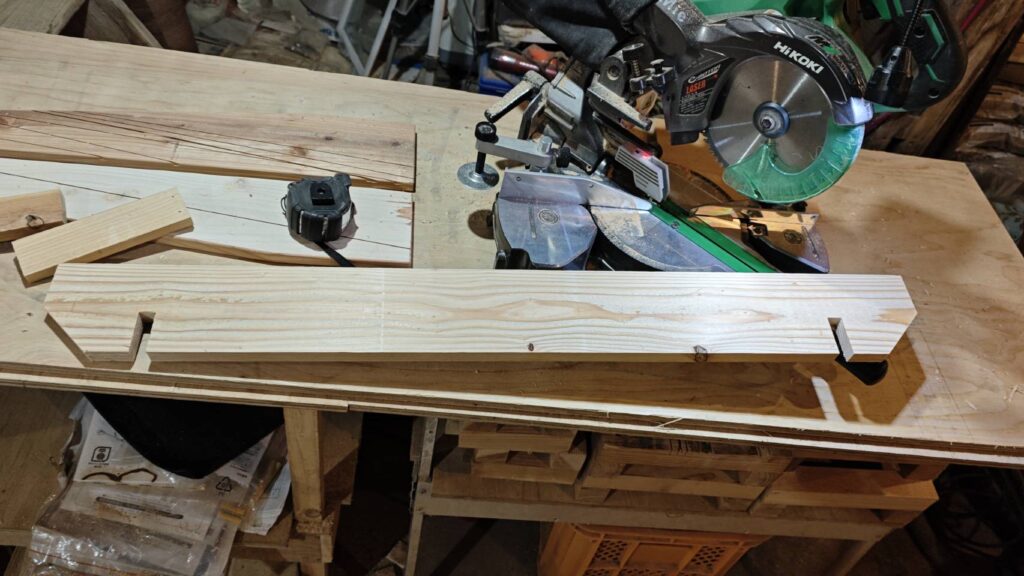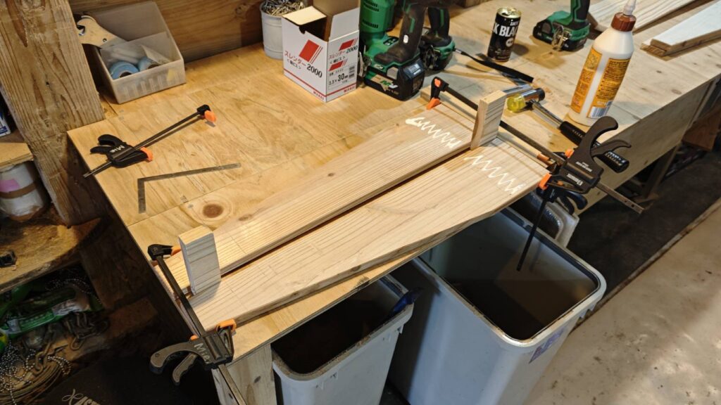 こちらの長いこと使い道の無かった斜めの切り余りの板を使って