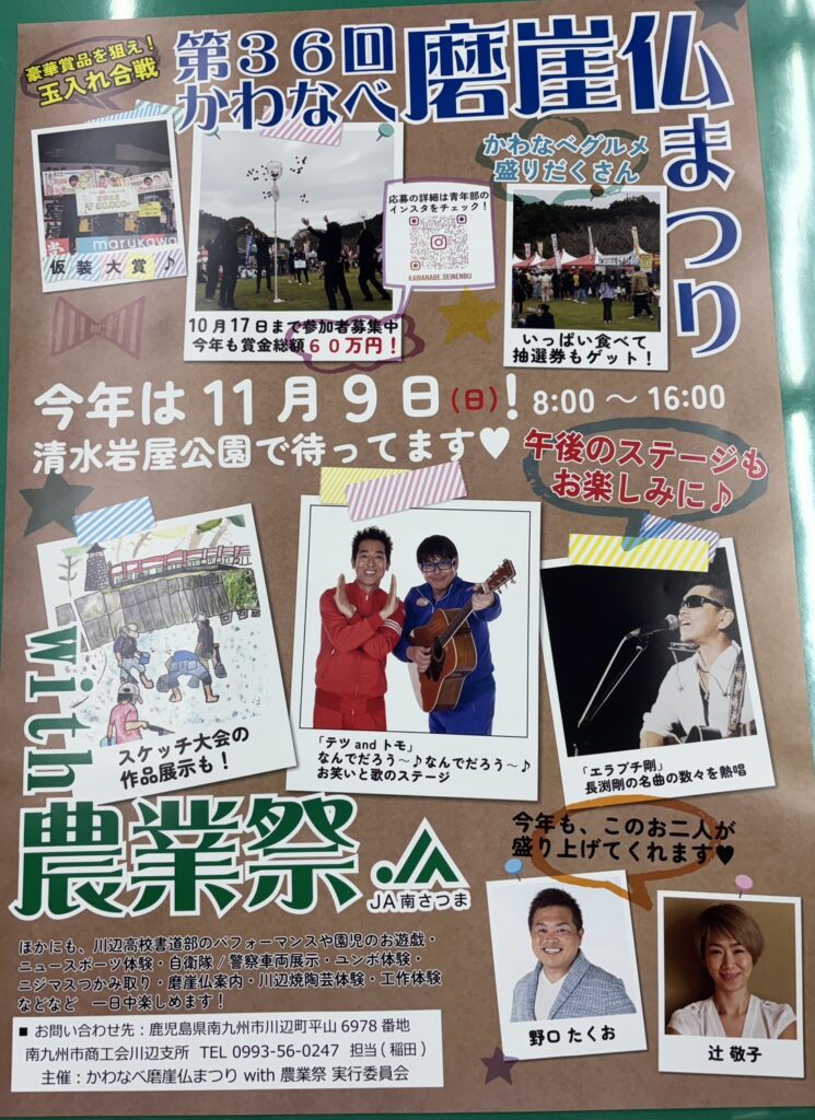 今年も11月9日日曜日に川辺の岩屋公園で磨崖仏祭りが開催されます。